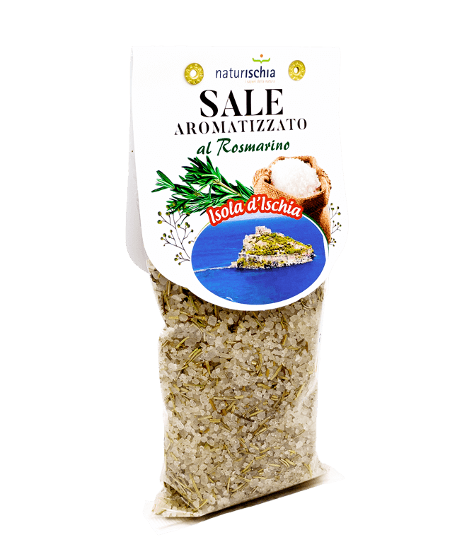 Sea salt crystals flavored with rosemary and other spices in variable proportions.