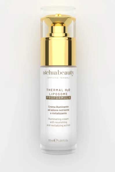 Crema illuminante ad azione nutriente e rivitalizzante di ultima generazione con Thermal Technology System a base di liposomi di acqua termale di Ischia.