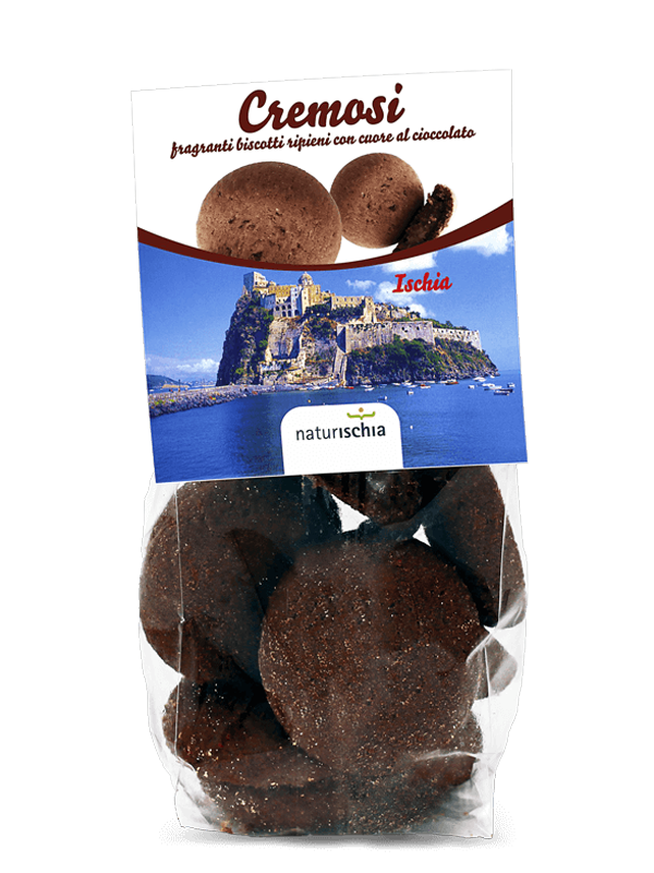 INGREDIENTI: Crema al cioccolato 30%, farina di frumento, grasso vegetale (di palma), zucchero, latte scremato in polvere, fecola di patate, pasta di uova pastorizzata, sciroppo di glucosio, pasta di mandorla, agente lievitante: carbonato di sodio, carbonato di ammonio; sale, aroma, colorante: beta-carotene.