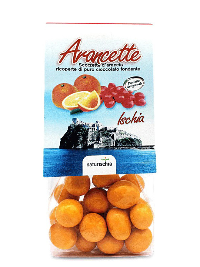 Pregiate scorzette d'arancia ricoperte di puro cioccolato bianco e da un sottilissimo strato di zucchero arancione