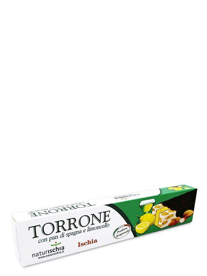 Delizioso torrone dal cuore di pan di spagna arricchito con il nostro ottimo limoncello. Contiene alcool.