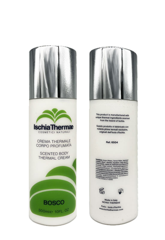 Crema corpo altamente idratante, non untuosa, facilmente assorbibile. Consigliata dopo doccia, lascia una gradevole e delicata profumazione. A base di acqua termale, olio di jojoba ed estratto di camomilla, ha proprietà emollienti, disarrossanti e lenitive proteggendo il PH della pelle. Le essenze conferiscono, inoltre, proprietà benefiche sull’umore. Disponibile in comodo formato di 300 ml con tappo dosatore, in profumazione bosco