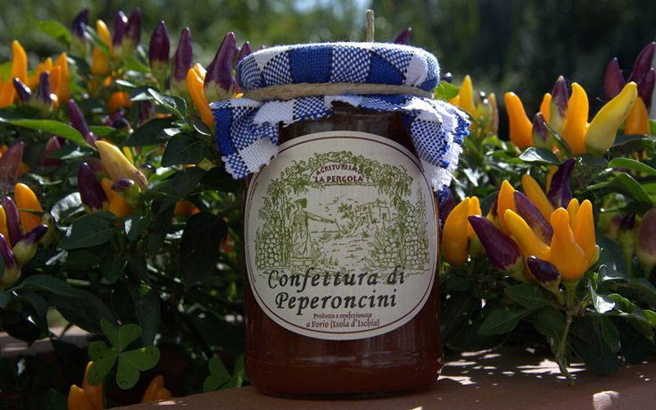 Prodotta con peperoncino, peperoni, mele, sale e zucchero, dall'azienda agricola la Pergola, sul versante sud occidentale dell'isola d'Ischia, con soli prodotti locali.